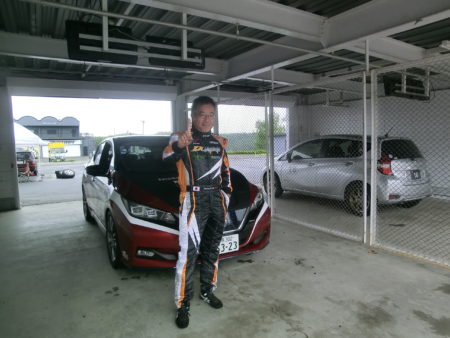 大井選手は「タイヤは発熱、グリップ、コントロール性文句なし、クルマも足はいいし、直線はリミッター作動時で170km/h出るし(先代リーフは140km/h)、ブレーキもOK。問題はかなり横G出るのに革シートに3点式シートベルトなことだけ(笑)とご機嫌です。