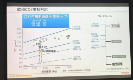 大雑把に言えば、5年前だとトヨタのハイブリッドシステムのニーズ無かっただろうけれど、燃費規制厳しくなる昨今は欲しいと言ってくれるんじゃないかと判断したという。実際、ハイブリッド無しに2025年燃費規制のクリア、難しいと私も思う。それまでに間に合わそうとすればトヨタのシステムを導入するのが一番リーズナブルかと。また、2030年以降は電気自動車かPHVか燃料電池です。