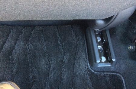 営業さんと話しましたが、あまり期待していないのがうっすら感じられ…後席に座ってふと足元を見たら、前シートのレール部分に化粧カバーなし。その右側にナットがありますが、これはシートベルト関係でしょうか? これだけ素っ気ないのにもちと驚きました。