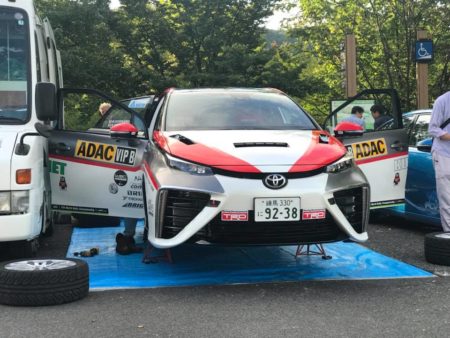 16時に福島到着! 市内から15分くらいの公園がサービスパークになっている。MIRAIはフロントのカラーリングを若干変更。今まで妖怪ウォッチのジバニャン風だったけれど、歌舞いた感じになりました~。ちなみにカラーはトヨタのマネだと思われているが、そうぢゃありません。私らの方が先であります。3年前のトヨタのイメージ、全然違いますから。