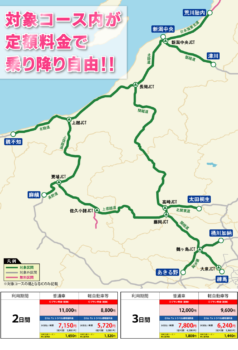 具体的に書くと、旅行先までの高速料金+宿泊料の半額をGoToで負担します、ということ。例えば群馬・長野・新潟パスだと、指定の宿泊施設+練馬ICと埼玉、群馬、長野、新潟県の高速道路を3日間使い放題1万2000円を基本料金とし、その半額を割引とクーポンで補助してくれる。高速道路を1日あたり2000円で乗り放題だってんだからお得だ。練馬~高崎の片道料金より安い!