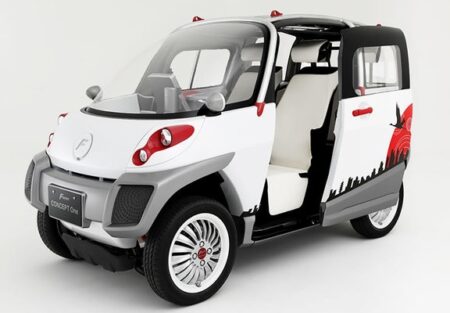 このカテゴリーのど真ん中はトヨタが発表したC+podだろう。出力12,5馬力。リチウム電池を9kWh搭載し100kmくらいの実用航続距離を持つ。価格165万円だ。車両カテゴリーは出光タジマEVと同じく超小型モビリティ(型式指定車)になるため、2人乗れる。トヨタもこのタイプの小型EVが次世代の近距離モビリティになると考えているのだろう。