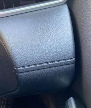 カローラクロスに改めて試乗してみた。クルマって少し長く乗らないと解らないことも多い。加えて開発担当者の話など聞けたらなおさら興味深いです。ということでくるまのニュースで書いたインテリアのステッチだ。記事では「硬い樹脂の素材なのにステッチのシボが入っている」と紹介した。下の写真がそう。運転席右側エアコン吹き出し口の下である。Cセグとしちゃ物足りない。
