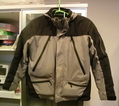去年の二輪のJAIA試乗会の際にもらいました。ポケットが多くいろいろ入り、肩と肘はパッドが入っているのでプロテクター入りと認められました。