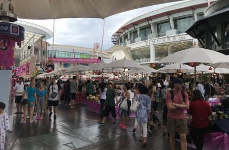 桟橋の前にソンテウ(荷台に乗れるトラック)がたむろっているので価格交渉して(1000円。タイとしちゃ高いです)2kmほどの距離にある大きなショッピングモールへ。レストランからアパレルまで何でも買える。ちなみに欧米ブランド、高いので注意。タイやマレーシア、インドネシアの高級アパレルが安くて品質も良い。クルーズ船に戻る前にビール飲む。