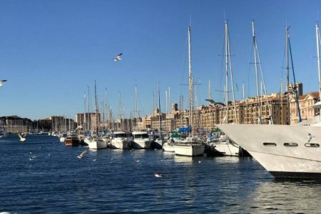 港から旧港のある繁華街までは往復2100円のシャトルが運行される。マルセイユ名物のブイヤベース(貝やイカなど入れない魚だけをサフラン風味で煮た鍋)、今や高級料理になっており、しかも当たり外れ大きいという。とはいえ魚好きならぜひとも試してみたらいい。濃厚な魚(ポアソン)の味を楽しめる。<乗船レポートその3へ>