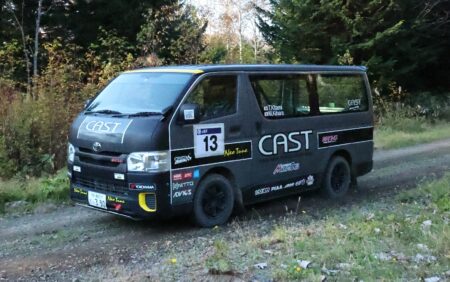ハイエースラリー車は2台製作され、2号車は全日本戦は国沢さんが、Gazoo Rally戦では板倉さんがドライバーを務めておられます。百戦錬磨の国沢さんですが、ハイエースのラリー車を全開で細い山道を走らせるのはかなりのチャレンジと言っておりました。それでも1日乗ると「乗り方がわかってきた」とタイムをどんどん上げてくるのが凄いところだなと思うのであります。