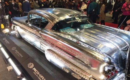 大阪オートメッセが始まった~。いやいやオートサロンと違うパワーでございます! 昨年GT-Rのギンギラギンを出展したショップ、今年はこんなん! どうやって作るのか聞いてみたら、厚くサフェーサーを塗り彫刻のように彫っていくそうな。そいつを金属調の仕上がりになる特殊な塗装をするのだという。仕上げにまるまる半年! これあ職人芸です!
