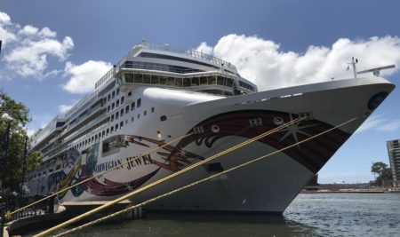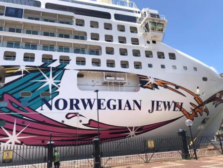 今回のフネはノルウェイジャンに属しており、292m/9万3千トンとなる。日本人に馴染みのあるハワイの『プライド・オブ・アメリカ』と同じクルーズ会社です。フネの大きさは290m/11万6千トンのダイヤモンドプリンセスと同等。乗客/乗組員は2200人/1000人だ。クルーズ期間は14泊15日。新型コロナ感染者が居たり感染させたら十分発症する時間がある。