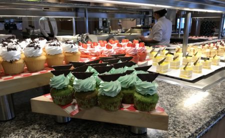 さすがにブッフェは十分対策している。入るときのアルコール殺菌を必ず指示されます。さらにトングから移る可能性大きいということで、食べ物は指をさすと持ち場のスタッフが盛ってくれる。調味料やコーヒーなど飲み物の類いさえ全てスタッフ。少し面倒ながらダイヤモンドプリンセスも出港時から対策していればずいぶん違っていたかもしれません。