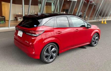 興味深いのは出力アップの方法。82馬力のエンジンや容量1.5kWhのリチウム電池はノートと共通。アクセル全開時の電池出力を34馬力から54馬力に上げてきたのだった。エンジン停止状態から54馬力を出せると言うことを意味する。正確に書くと、秒単位ではさらにブーストしているようだ。オーラのメーター、左側が出力をパーセントで表示しており絶対的な出力を示唆する。