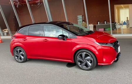 これがオーラの楽しさになっている。とにかくアクセル全開したら即座に82馬力で加速開始するのだった。このレスポンス、リーフのような100%電気自動車にこそ届かないものの、どんなに反応良いガソリン車をも圧倒する! もちろん大幅にドライバビリティが向上したヤリスのハイブリッドすら寄せ付けない。フィットの弱いアシストしかしないハイブリッドと別次元と言える。