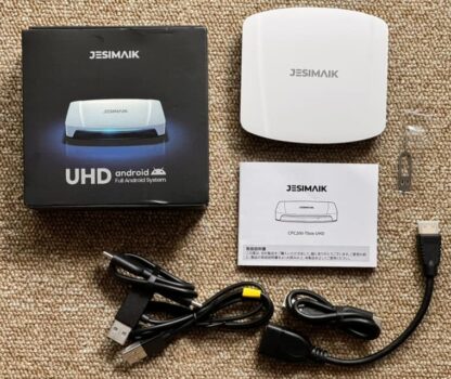 今回使ったのはJESIMAIK(ジェスマイク)の『CPC200-Tbox UHD』という製品。8コアのクアルコムチップを使っているためとても速いと評価されている。楽天とかだと半額クーポンを使えるため3万9990円で購入可能。セットアップはこの手のガジェットに全く詳しくないジイサンだと厳しいかもしれないが、スマホを使える人なら出来る(解説動画なども探せる)。