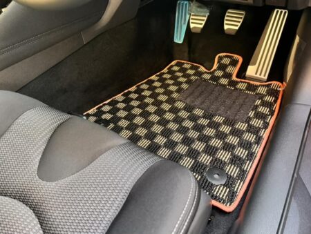 ちなみに塗装品質の目安になる”ゴミ”や”ブツ”はほとんど無かったそうな。もう少しブラッシュアップしてやれば良い塗装になるだろう。フロアマットはこんな感じ。チェッカー模様に縁取りをオレンジにしてみました。しっかりストッパーも付いており、なかなかのクオリティ。苦しゅうない。安いし。私も及川さんの率直動画を撮ったので遠くないタイミングでお届けします。