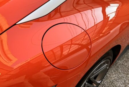 ただ塗装終了してからの状況が悪かったようだ。及川さんによれば「塗装終了後に何らかの理由で他の塗装が紛れ込んできたんだと思います」。加えて磨き傷もいろんな部分にあったようだ。一番下の動画の始まり1分だけご覧いただければよ~く解る。また、大きすぎるフューエルリッドの色合いが違うのも気になるとのこと。これ、私も感じます。バンパーの色合わせが出来ているだけに残念。