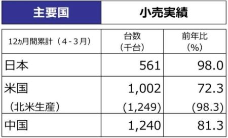 前年度比、7~8割と言っても前年もコロナ・半導体不足で車は作れていませんでした。そこにアメリカのマイナスが効いた形となると思います。