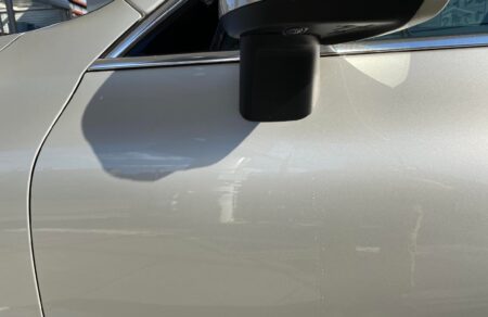 ホンモノのガラスコートをすると、ドアミラー下のような「典型的な水垢の付き場所」(ルーフなどから流れ落ちる雨水の通り道です)だってこの通り。ガラスコートしたのは2019年7月。2年半経っている。経験上、5年でも問題無し! この場所に水垢付かなければ、ボディ全てで付かない。水拭きだけで新車のようなツヤまで出てくるから私のような洗車嫌いですら楽しくなる。