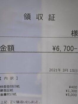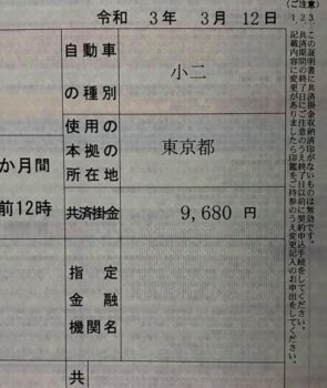 続いて自賠責を用意。任意保険と同じ会社で入ると割引あったりするので、相談してみたらいい。面倒なら車検場の近所の代書屋さんやテスター屋さんならどこでも加入出来る。小型自動二輪(251cc以上)だと24ヶ月で9680円。ムカシに比べたら事故減ったため、ずいぶん安価になりましたね。2万円を超えていた時もあったように記憶してます。