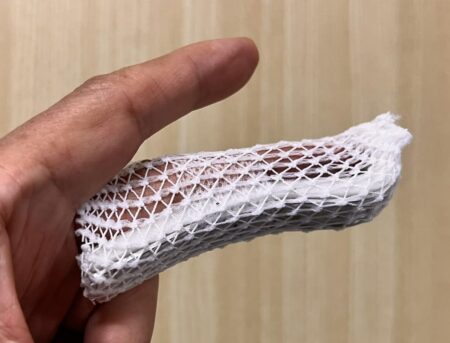 といっても不幸中の幸いというヤツでコレといった治療方法は無く、とりあえずアルミスプリントというシーネ(添え木)で保護して1ヶ月様子みましょうということに。とはいえ中指がこんな状態になるとキーボード操作厳しい。かといってシーネ取ったら痛くて辛抱たまらん。といっても大局的に見たら、中指の先っちょだけ骨折したのみ。世の中、もっと厳しいことになってしまうことなどいくらでもある。健康の大切さを神様が考えさせてくれたと思うことにします。