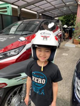 4連休で孫その1が泊まりにきた。今年から小学校です。小さくて誰も被れないヘルメットがあったので試してみたらピッタリ! ポケモン取りに行きたいというのでベトナムカブの後ろに乗せてみたら「気持ちイイ!」と言う。バイクの後ろに孫を乗せるようになるとは想像もしていなかったです。初バイクにはカブくらいの緩さがピッタリかもしれません。ジジイの上がりバイクにも向く。