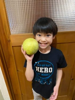 千葉の読者から頂いた大きい梨。甘くて美味しい