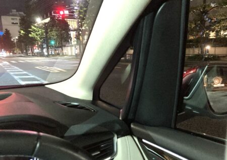 視認性⭐️⭐️ フロントの視認性は最近乗った車の中で一番悪かったです(笑)。フロントには2本のAピラーと三角の小窓があり、小窓には視覚を失くす工夫が施されているのですが、なんせAピラーがAダッシュピラーと同じ太さで死角を作って見にくい! 場所によっては人がすっぽり入ってしまう太さです。交差点を右折する時、死角に人がいないかを確認するために首を左右に振らないといけないほどAダッシュピラーが太いのは残念です。