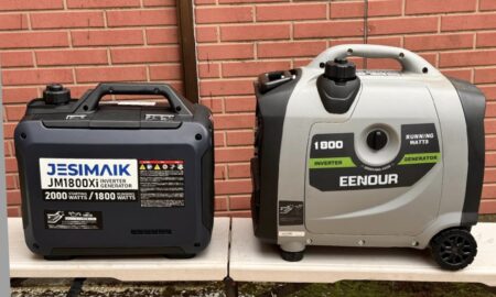 ホンダだと『EU18i』というタイプになり、21.1kgもある! ヤマハ『ES1800iS』で25kg! 女性だと扱いに苦労する。実勢価格も13万円台で気軽に買えるレベルじゃありません。隣にあるイーノウの『1800』が、ホンダやヤマハの1800w機と同じサイズです。ちなみに今回購入した『JM1800Xi』の価格は5万2900円。1800W機として考えたら割安だ。