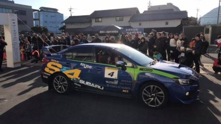 昨年のL1でもWRX S4は人気だったというけれど、今年も皆さんから写真を撮って頂けてました。「キレイですね!」と言われます。ドライバーの岩岡さんにも気に入ってもらえたようだ。肝心のラリーはどうかといえば、やはりパワーに慣れるまで少し時間掛かったらしい。そらそうだ。一般道で全開すると速いですから。SS1は33台中の13位。私も抑えた方がいいとアドバイスした。