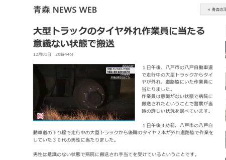 後輪2軸大型トラックの左後ろ輪の脱落事故が今年も発生。国交省、抜本的な対策に興味無し