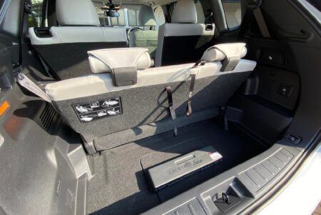 嬉しいのが3列シート。さすがに私だと厳しいけれど身長160cmくらいまでの人なら2~3時間の移動も可能。座面は薄いけれどソフトだしヘッドレストだって大柄。リアガラスまでの距離が案外大きいため、追突された時の安全マージンも十分確保出来ている。3列目シート、RAV4PHVと比べられた場合、アウトランダーPHEVの強力な商品力になると思う。