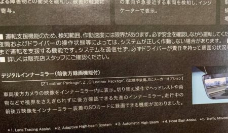 ディーラーでは新型ハリアーのカタログが出回っており『G』グレード以上なら(ベースグレードのSはメーカーオプション)前方用のドライブレコーダーとセットで標準装備だと解る。おそらく今後、デジタルルームミラー装備車には全てこの機能が付いてくることだろう。ちなみに信頼性のある前後のドラレコを後付けしたら工賃込みで4万円にはなりますよ。