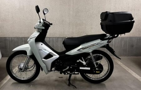 ベトナムカブ、シート開けてもヘルメット入るスペース無い。いっつも持って歩いていた。そこでヘルメットの入るGIVIの43(背もたれなどフルオプション)にしてみました。円安にも関わらずGIVIは品質の割にリーズナブルだ。バイクのサイズを考えたら少し大きめながら、大は小を兼ねる。コンビニで買ったくらいの荷物なら余裕。雨具を入れておくのもいいし。