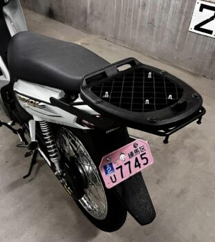 ネットで見ていたら、どうやらタイ仕様のWave110用キャリアが付くようだ。タイに行く喜多見さんに御願いして買ってきて貰う。価格は450B。1バーツ4円として1800円です! いいね! しかもメチャクチャ頑丈な作り。早速取り付けようとしたら、尻下がりになってしまう。そこで2つ並んでいる取り付け穴の後ろ側にワッシャを入れてたらバッチリです!