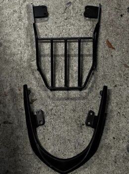 ちなみにベトナムに行けば専用品もあって同じくらい安いという。東南アジアだとここにザブトン敷いて1人乗る(シートに3人なので4人! 子供混ざると5人ですね!)。そんなことからゴツい鉄材で作られてます。とはいえバイク後端だけに重いモノを乗せるとスタート時にウィリーしちゃう。ハンドリングにも問題出てくるのから軽いモノにしておくこと。