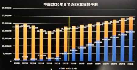 下は中国のエンジン車と環境自動車の販売予想。全需を見ると新型コロナ渦で2020年は落ち込んだものの、2021年から回復基調にある。興味深いことに2022年から急激に環境自動車の販売台数が伸びてます。2023年は補助金システムを打ち切ったのに2022年以上の販売台数だという。売れ筋の中心は中国のメーカーとテスラ。魅力的でコスパの高い電気自動車が増えてきたかららしい。