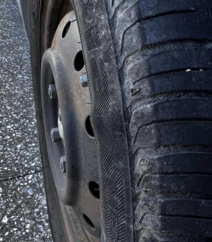 八丈島で行った日産自動車大学校のクルマ安心点検実習、大成果を上げました! 一番きわどかったのがホイールナットの緩み。何と全てのナットが手で緩んだ! 遠からずホイール脱落になったと思う。これ1台目の「やってよかった!」です。すると次はサイドウォールのダメージによる膨らみ。これ、学生さんが発見しました。内部構造が壊れていてバーストに直結する。