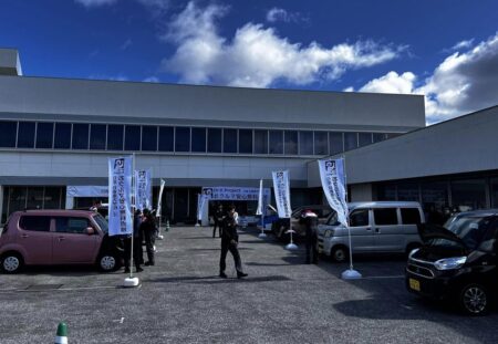 本日の予定台数は36台。4台の上振れを見越していたというが、始まってみたら大盛況! 学生さん達だけじゃ誘導員なども足りなくなり、先生や日産から見に来ていた人までニンジン持って誘導員やってました。終わってみたら48台! ほとんど休み時間無し。それでも皆さん「楽しかったです!」。八丈島役場や議員さん、整備工場など協力していただき、上手くいきました。