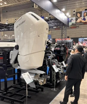 世界のTOPといえばマーキュリーの600馬力7.6リッターV12! ここにきてお金持ちはこぞってマーキュリーである。これを4機掛けすると2400馬力! 1時間走らせたらハイオク600L以上喰う。調子に乗って全開すると1000Lですね~。まぁフネ+船外機で2億円ってところだから気にしない。そんなカスタマーに船外機を売れば儲かるという話でした。