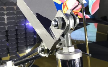上は月などに着陸する機器のモックアップだという。遠くからでも「うお~!」とウナる。足回りのボルト&ナット、自動車でも使わないほど安っぽい金属だったりして。そもそも着陸機器の下はホームセンターで売ってるような安い丸テーブル風。誰かお金出してボルト&ナットくらいチタンにしたらいい。一昔前の中国の遊園地を見てる感じ。
