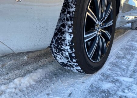XC60が履いているのは1世代前となるブリザックDM-V2の最終年式(2018年)。出た当時は抜群の性能と評価されていた銘柄ながら、今シーズンで最後にしようと考えていた次第。スタッドレスタイヤの寿命、私は5~6シーズンだと考えてます。本日、けっこう手強いアイスバーンだらけだったものの、大きな問題無し。近所で一番キツい坂の上り下りも余裕でした。
