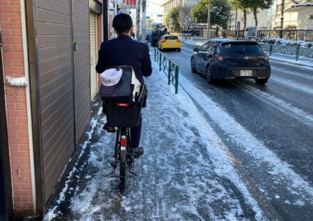また、雪の中、自転車に乗っている人が多いのも信じられない。歩道であっても転倒すればガードレールなどに頭が当たる可能性ある。首がガードレールの上に直撃しようものなら即死ですよ。車道に至っちゃ説明する必要無し! 幼児を乗せて3人乗りしているケースや、70歳以上のお婆さんがアイスーバーンなのに漕いで走っている姿も。恐ろしいっす!