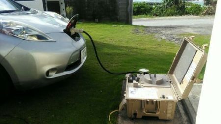 沖縄に激しい風をもたらした台風17号により、リーフ君を試して頂いてる阿嘉島は21日の未明から停電。ただ21日は終日烈風のため、家から出られないほどだったという。当然ながらリーフ君から電気を取り出すことも出来ず。本日22日の朝も停電が続き、朝からパワームーバー使ったとのこと。やはり最初に困るのはスマホの充電たったそうな。スマホ、大切なライフラインだと思う。