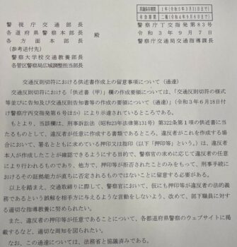 素晴らしい! この通達、興味深いことに「押印や拇印なくても証拠能力が直ちに否定されるものではない」と書いてあり、すなわち「反則切符切られたら押印や拇印なくても違反だからね!」と言いたいのだろうけれど、そうはいかない。100歩譲って動画などの証拠が残っていれば、押印や拇印無くたって違反は確定できる。したがって上の通達は正しい。
