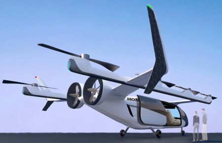ホンダも行方不明と言われる三部さんが超意欲的だと言う。トヨタと同じくヘリコプターの代替で、200km/hほどで移動出来ながら垂直離着陸可能。トヨタのような変位飛行じゃ無いので速度は低い反面(8つのブレードで浮力を有無と言うが空気の干渉はないのだろうか?)、ターボンエンジンで発電した電力を使うので航続距離は300kmを超える想定。