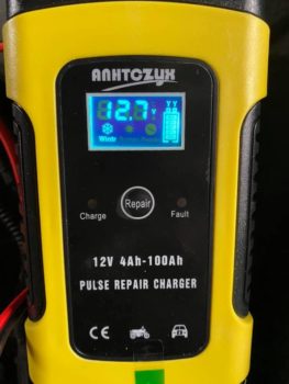 先日紹介した2399円のパルスモード付き中華バッテリーチャージャー、すでに売り切れてました。少し待てば入荷するかもしれません。外気温2度の中、6年目のWRX S4のバッテリー電圧を計ってみたら理論値の12,7V。右のバッテリー残量も100%となっている。バッテリー容量60%くらいになったら真ん中の「リペア」というボタン押して10時間くらいパルスモードで充電すればOK。