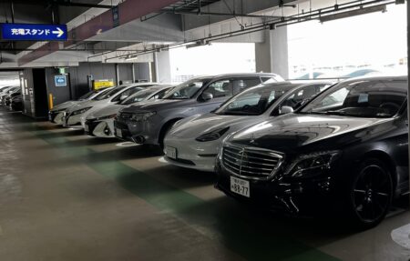 羽田空港の普通充電器は5つ。本日、電気自動車は2つしか使えません