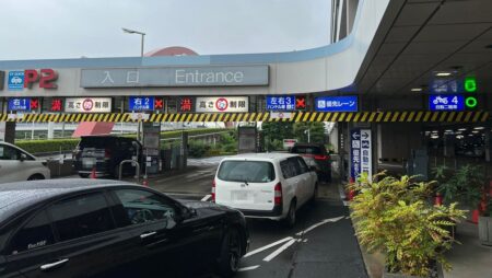まだ夏休みに入ってないのに! 困ったことに羽田空港の場合、待ってもほとんど動かない。1時間待ちなど当たり前。そうこうしているウチ、飛行機は飛んでしまう。ということで1人ならバイクをおすすめてしておく。駐車場不足の羽田ながら、バイクが満車になったのを見たことなし! しかも駐車料金安いです。クルマだと24時間あたり2140円。バイクなら500円だ。