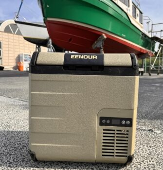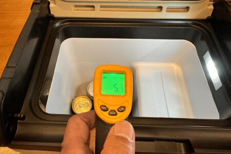 携帯電源も持っているため「無し」を買おうとおもったけれど、単体で完結していることを考え電池付きにしました。冷蔵庫の性能は上々。マイナス20度まで設定出来るから、冷凍食品をアウトドアに持って行ける。キャパシティは350mLで23本。500mLのペットボトルなら15本あるから、アウトドアで3~4人分の冷たい飲み物をキープ可能。