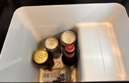 使い勝手だけれど、唯一の「う~ん!」が持ち手の形状。本体重量が9.3kgある。500mLのボトル12本入れたら6kgでトータル15kgを超えてしまう。絶対的な重さはそうでもないが、持ち手の”角”がシャープで実際の重さよりキツい感じ。手持ちで長い距離を移動することは厳しいと考えて頂きたく。もっといえば電車やバスといった公共の交通で持ち運ぶように出来ていない。