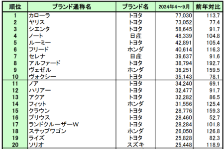 本当に久しぶりに、車種別販売台数を見ることができました。個人的には、次の3点に驚いています。